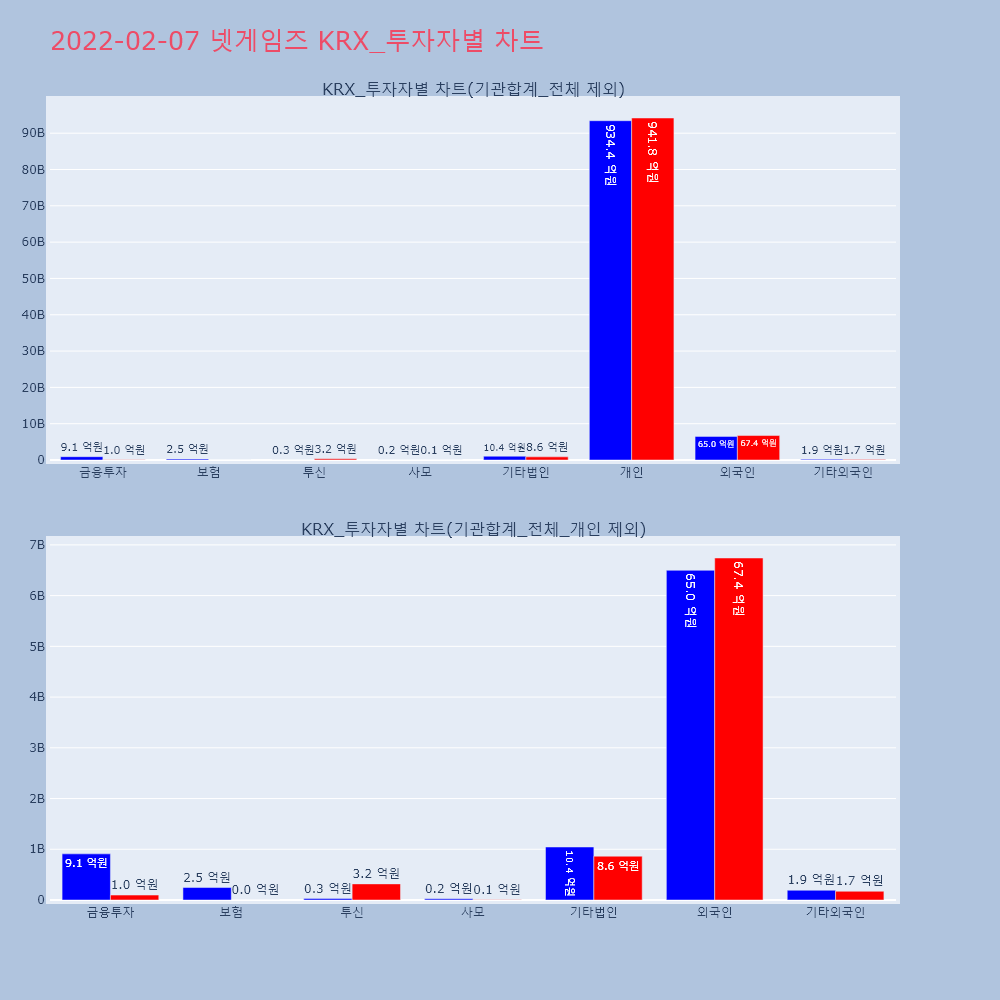 | 개인 | 13,315,843 | 13,983,447 | 667,604 | 87,866,342,250 | 92,239,652,640 | 4,373,310,390 |