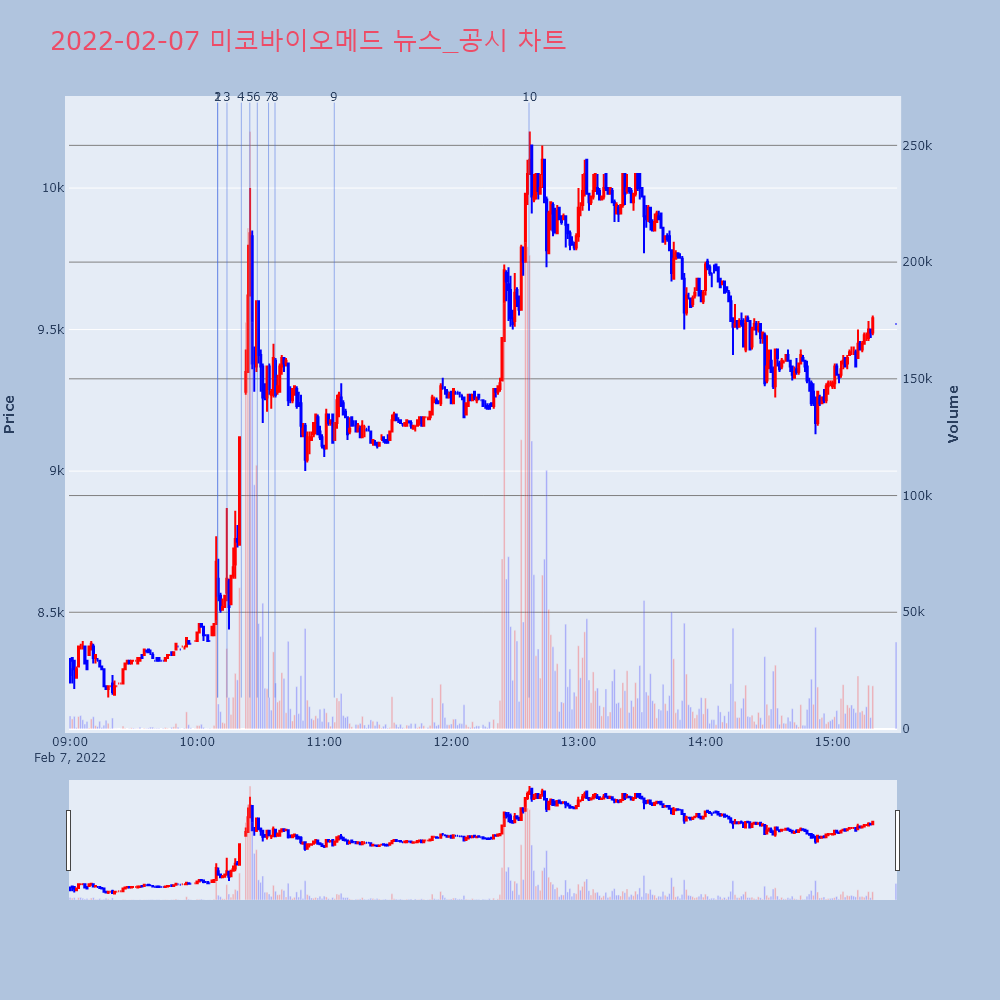 | 4 | 미코바이오메드, +10.55% VI 발동미코바이오메드(214610)가 VI가 발동했다. 전일 | 조선경제 | 미코바이오메드 | 2022-02-07 10:20:52 |