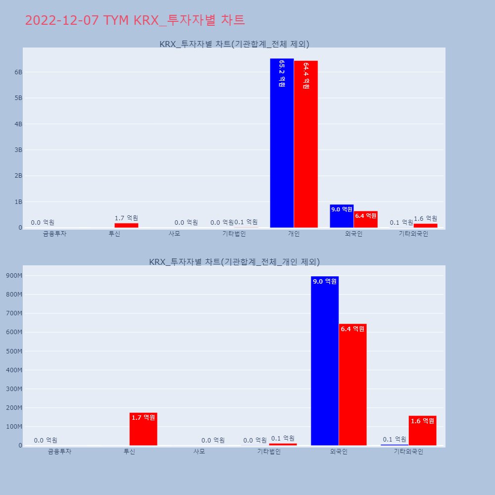 | 투자기관 | 매도량/금액(백) | 매수량/금액(백) | 순매수량/금액(백) |