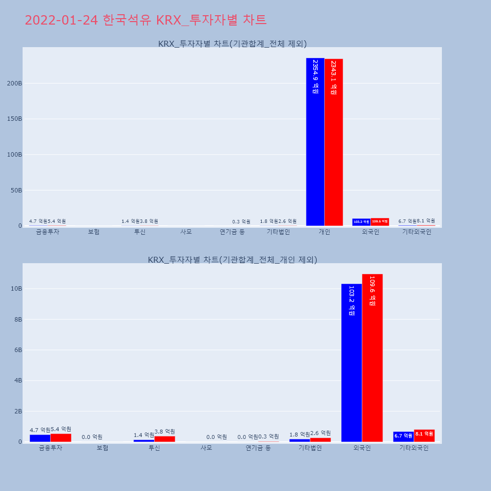 | 투자기관 | 거래량_매도 | 거래량_매수 | 거래량_순매수 | 거래대금_매도 | 거래대금_매수 | 거래대금_순매수 |