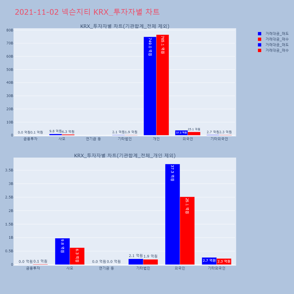 | 투자기관 | 매도량/금액(백) | 매수량/금액(백) | 순매수량/금액(백) |
