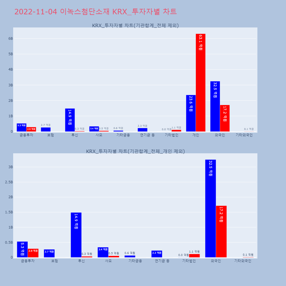 | 투자기관 | 매도량/금액(백) | 매수량/금액(백) | 순매수량/금액(백) |