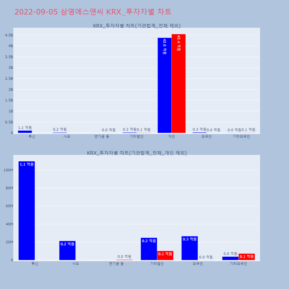 | 개인 | 194,906 | 192,281 | -2,625 | 8,183,739,850 | 8,072,625,300 | -111,114,550 |