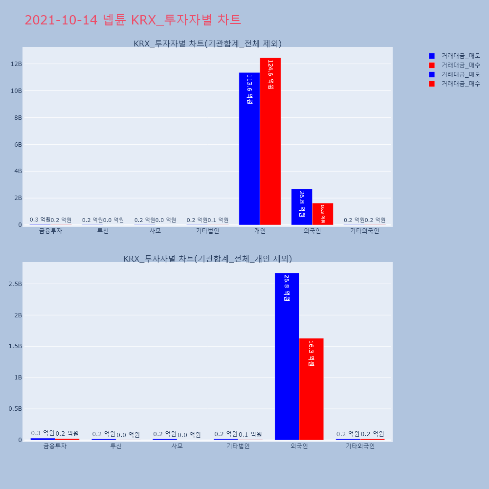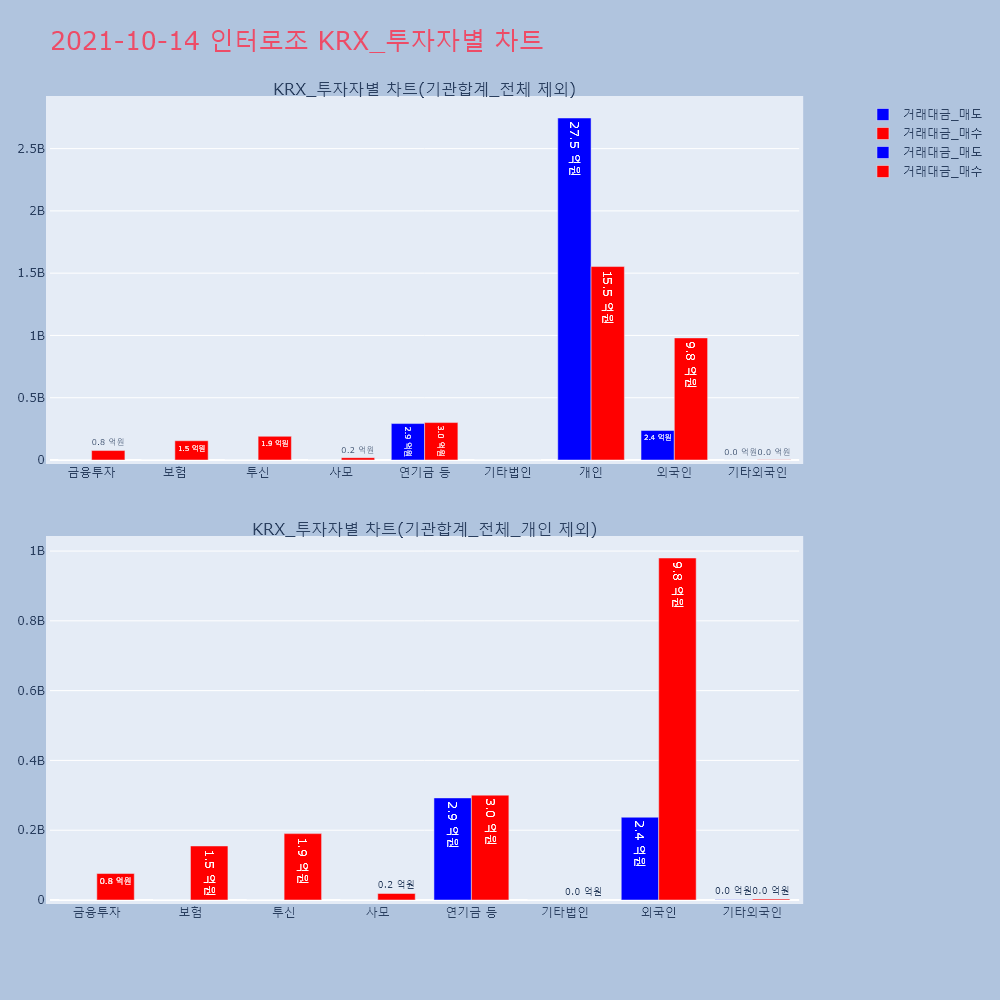 | 투자기관 | 거래량_매도 | 거래량_매수 | 거래량_순매수 | 거래대금_매도 | 거래대금_매수 | 거래대금_순매수 |