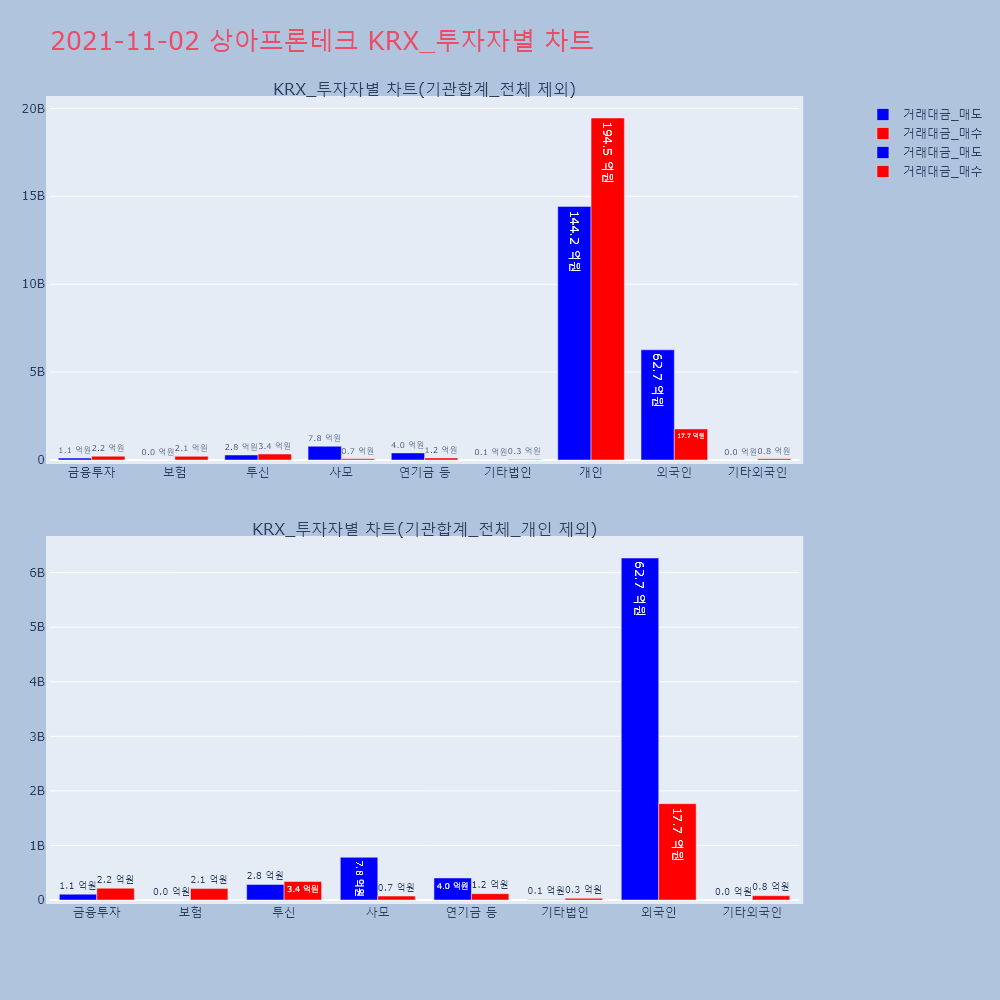 | 투자기관 | 거래량_매도 | 거래량_매수 | 거래량_순매수 | 거래대금_매도 | 거래대금_매수 | 거래대금_순매수 |