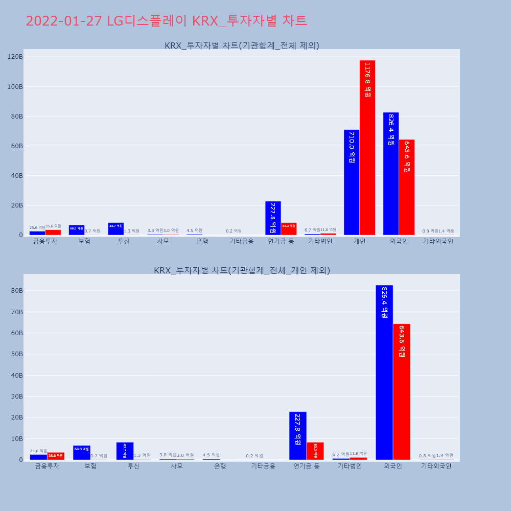 | 외국인 | 72,597 | 49,002 | -23,595 | 2,103,605,700 | 1,411,965,100 | -691,640,600 |