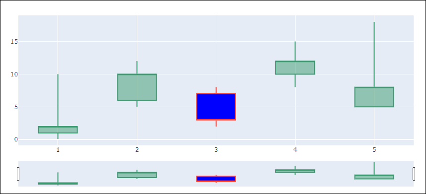 fig = go.Figure(data=[go.Candlestick(x=[1, 2, 3, 4, 5],