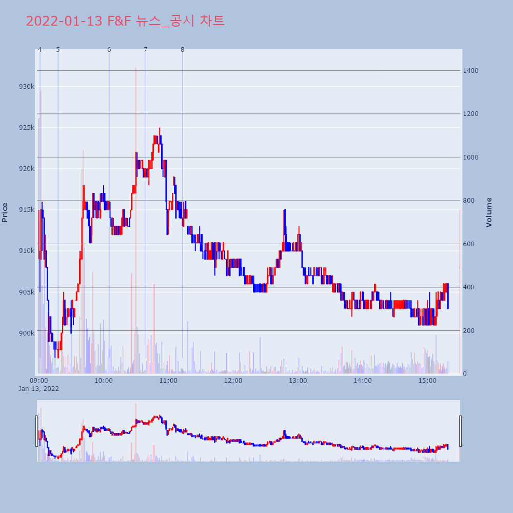 | 12 | [장중수급포착] F&F, 외국인 8일 연속 순매수행진... 주가 +3.26% [서울=뉴스핌] 로보뉴스 = 02일 10시 15분 현재 | 뉴스핌 | F&F | 2023-05-02 10:23:45 |