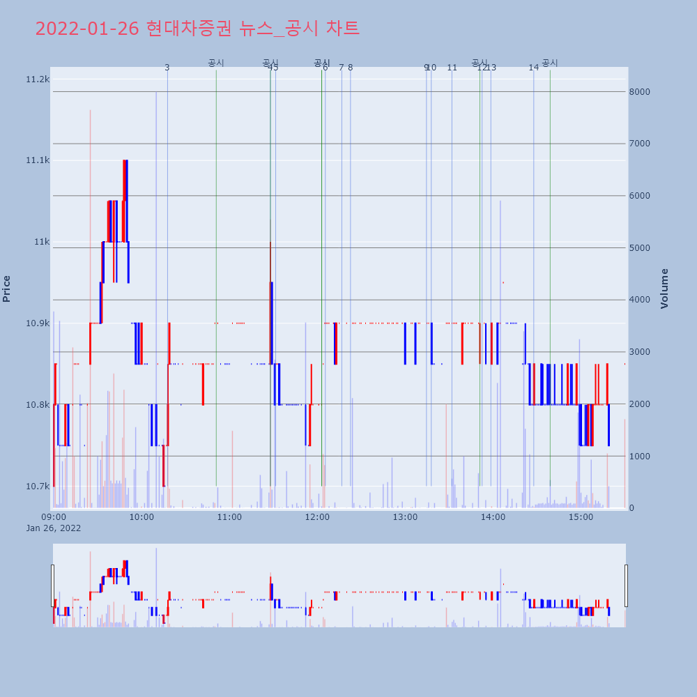 | 3 | [장중수급포착] 현대차증권, 외국인/기관 동시 순매수… 주가 +1.42% [서울=뉴스핌] 로보뉴스 = 26일 10시 15분 현재 | 뉴스핌 | 현대차증권 | 2022-01-26 10:17:46 |