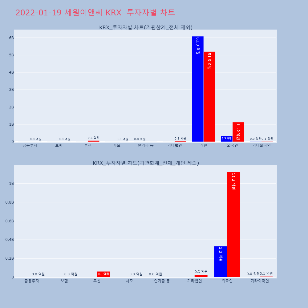 | 투자기관 | 거래량_매도 | 거래량_매수 | 거래량_순매수 | 거래대금_매도 | 거래대금_매수 | 거래대금_순매수 |