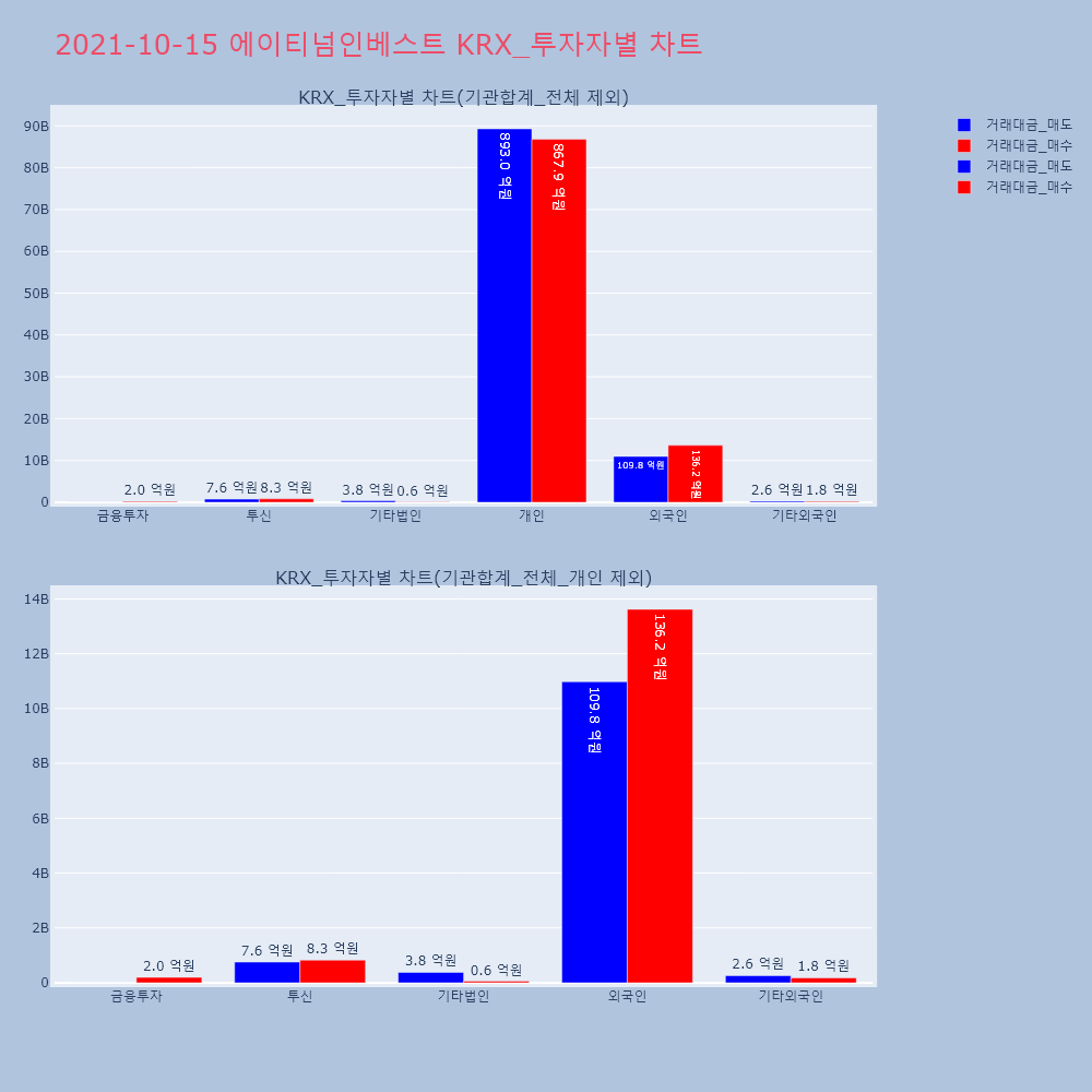 | 투자기관 | 거래량_매도 | 거래량_매수 | 거래량_순매수 | 거래대금_매도 | 거래대금_매수 | 거래대금_순매수 |
