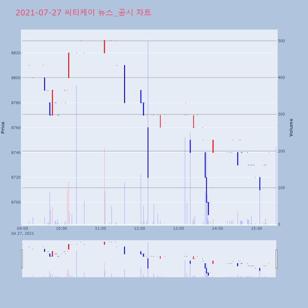 | 4 | 피엔케이피부임상연구센타, +8.62% VI 발동피엔케이피부임상연구센타가 VI가 발동했다. 전일 대비 | 조선경제 | 피엔케이피부임상연구센타 | 2022-08-10 11:24:46 |