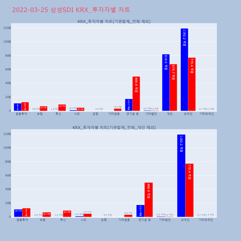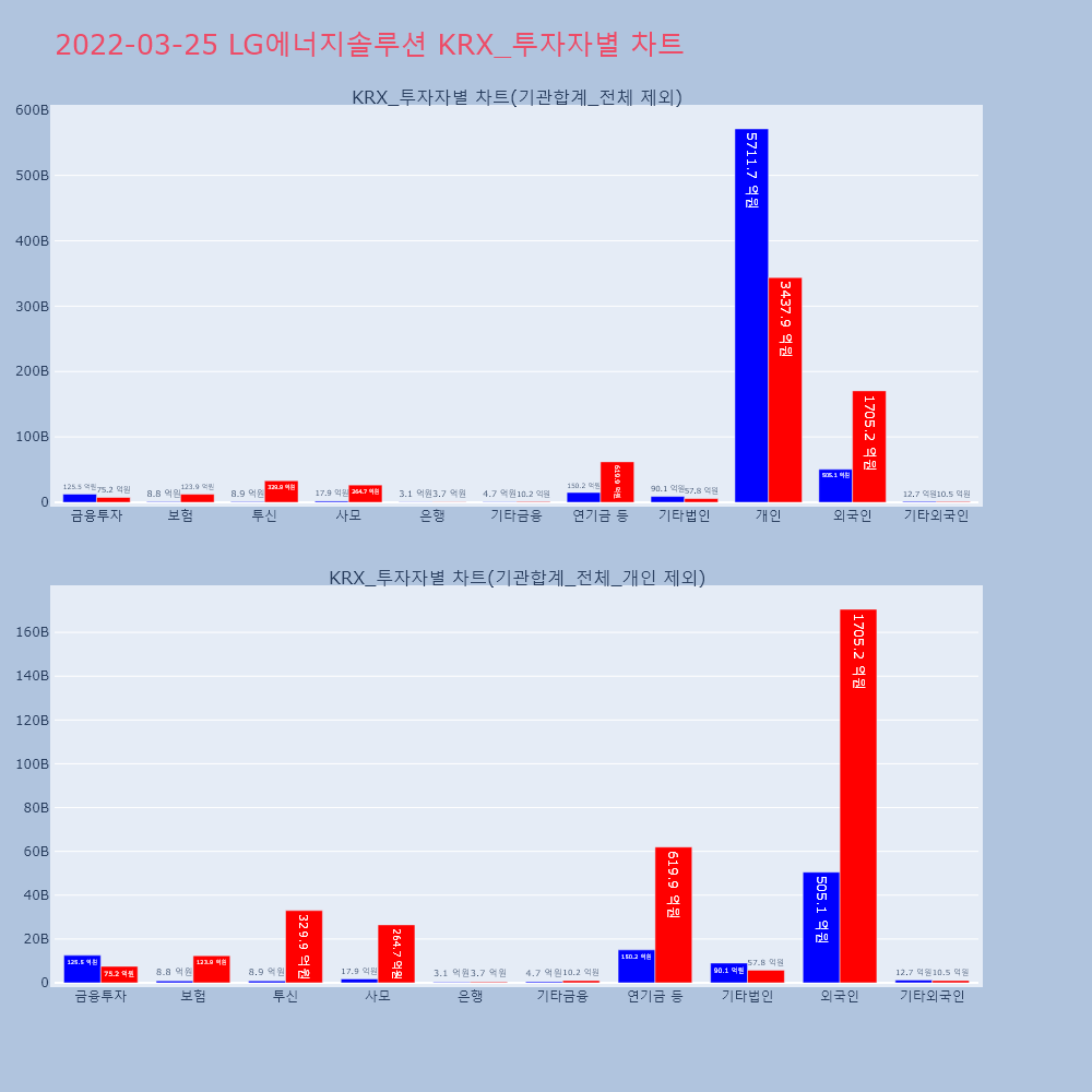 | 25 | 25일, 기관 거래소에서 LG에너지솔루션(+7.6%), 삼성SDI(+1.88%) 등 순매수기관 투자자는 25일 거래소에서 LG에너지솔루션, 삼 | 한경/증권 | LG에너지솔루션 | 2022-03-25 18:35:11 |