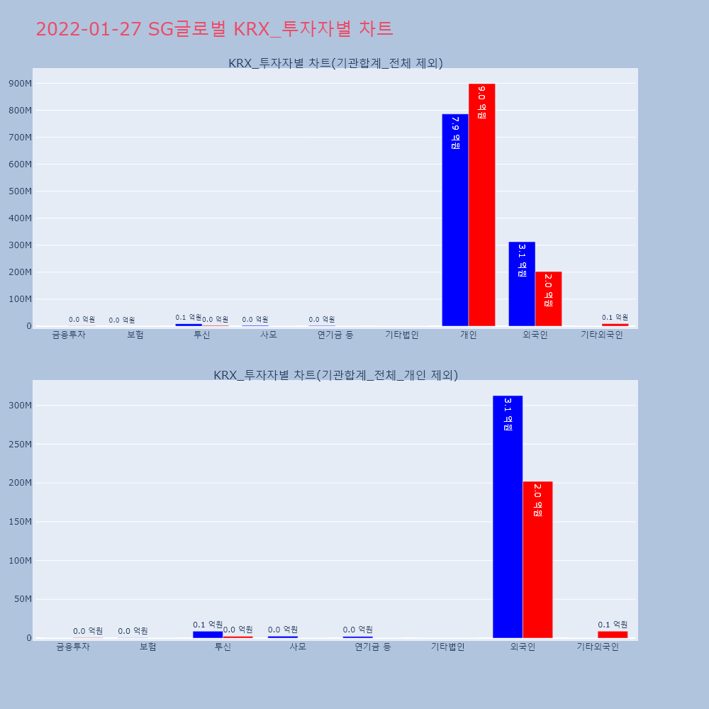 | 투자기관 | 거래량_매도 | 거래량_매수 | 거래량_순매수 | 거래대금_매도 | 거래대금_매수 | 거래대금_순매수 |