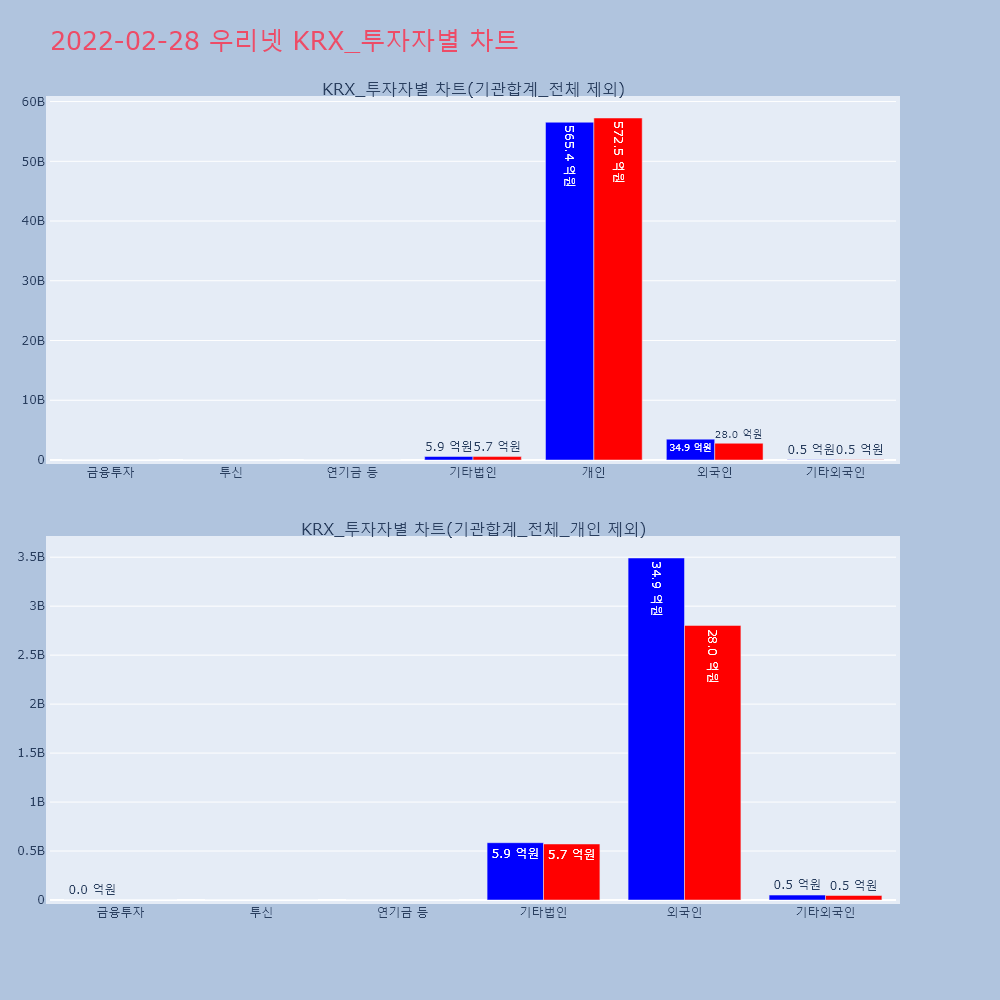 | 투자기관 | 거래량_매도 | 거래량_매수 | 거래량_순매수 | 거래대금_매도 | 거래대금_매수 | 거래대금_순매수 |