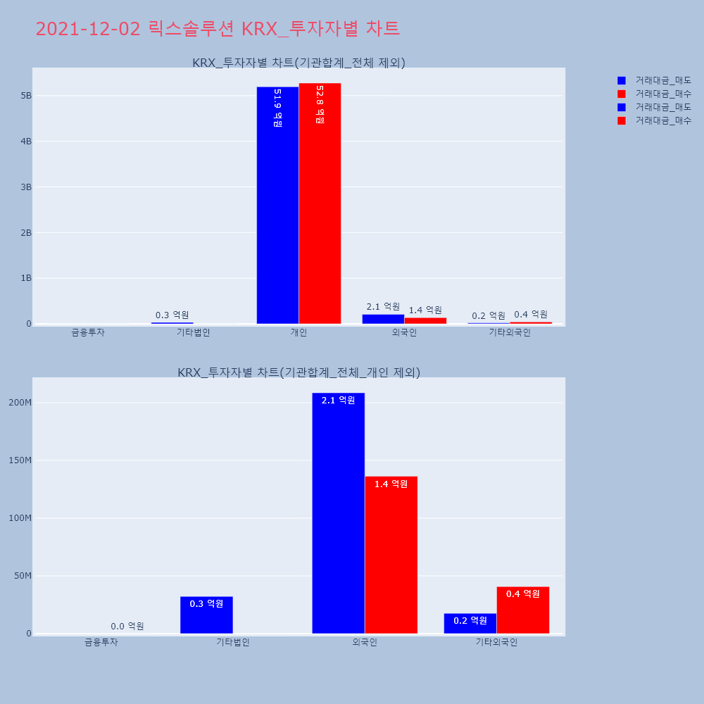 | 투자기관 | 거래량_매도 | 거래량_매수 | 거래량_순매수 | 거래대금_매도 | 거래대금_매수 | 거래대금_순매수 |