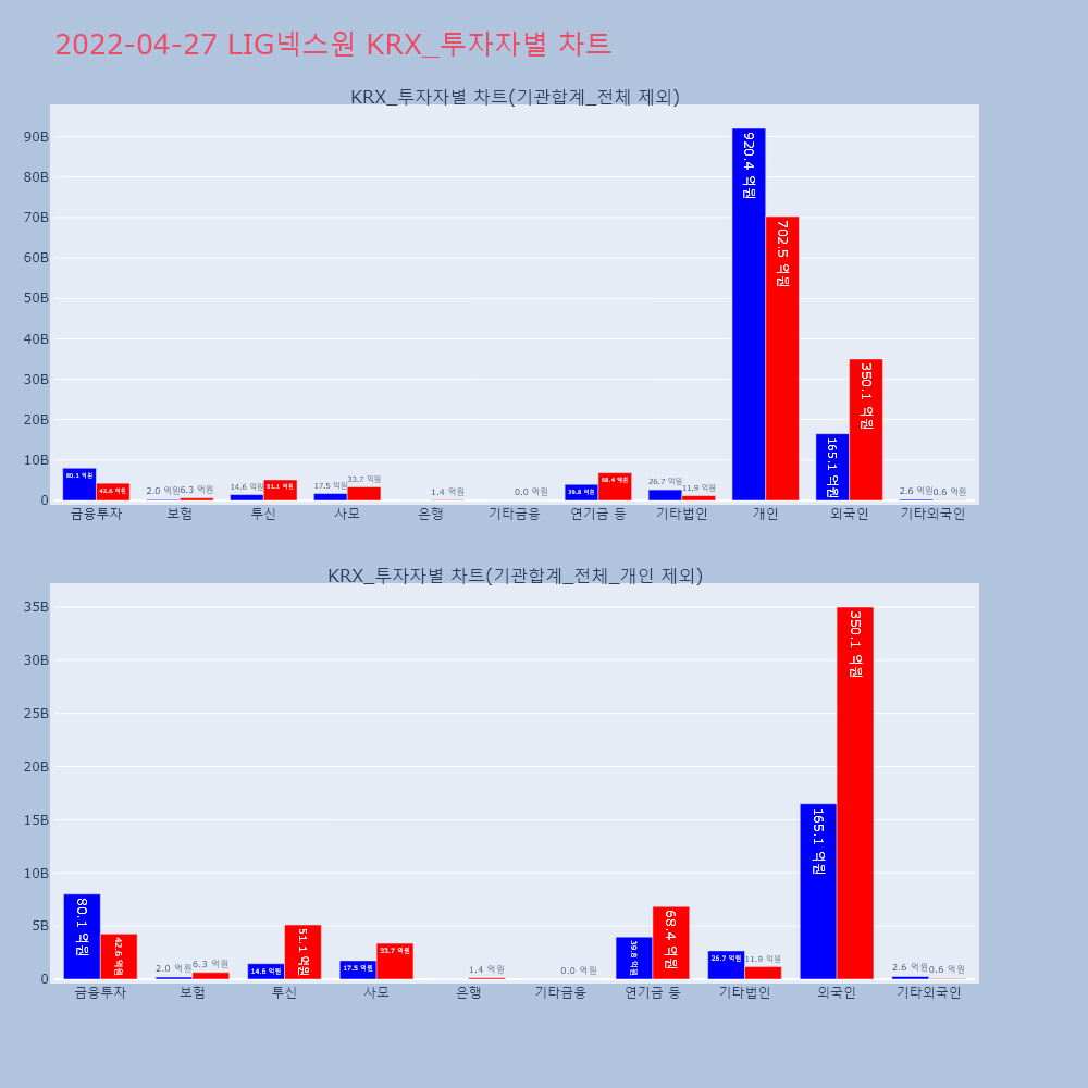 | 투자기관 | 거래량_매도 | 거래량_매수 | 거래량_순매수 | 거래대금_매도 | 거래대금_매수 | 거래대금_순매수 |